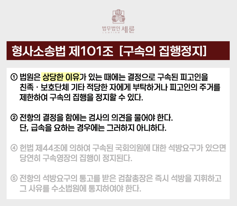 이럴 때 고려해볼 수 있는 제도가 바로 '구속집행 정지'입니다.