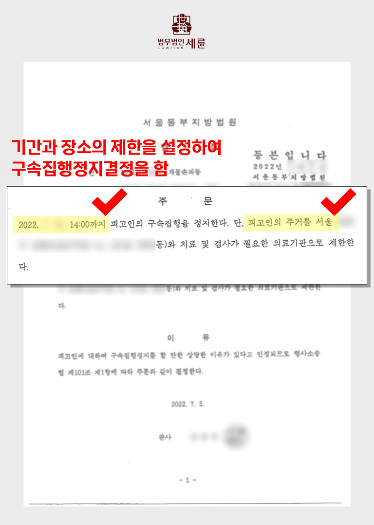 저희 법무법인 세륜 형사전담팀 또한 구속집행정지 결정을 받아야 하는 다양한 사례들을 접하고 있는데, 그 중 한 사건을 말씀드리겠습니다.