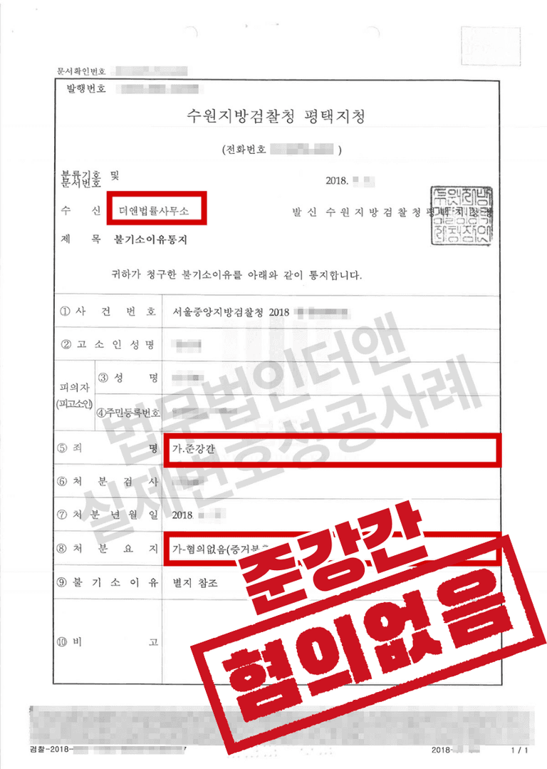 위와 같은 법무법인 더앤의 조력을 바탕으로, 검찰은 A씨에게 혐의없음(증거불충분)의 불기소 처분을 내렸고, A씨는 억울함을 풀고 평온한 일상으로 복귀할 수 있었습니다.