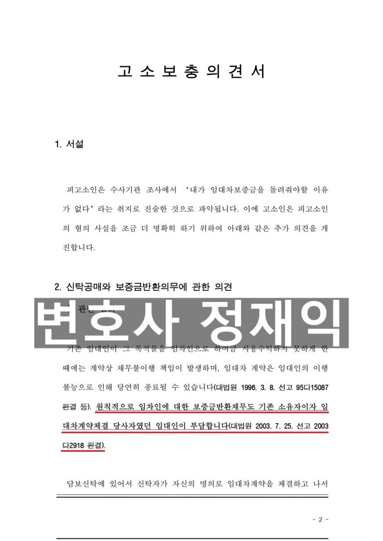 실제로 고소를 진행하는 과정에서 사건의 복잡한 법리로 인해 담당수사관도 명확한 이해가 어렵다며 추가 설명을 요청하였습니다. 이에 정재익 변호사는 관련 법리와 사실관계를 더욱 명확히 정리하여 아래와 같은 추가 서면을 제출하였습니다.