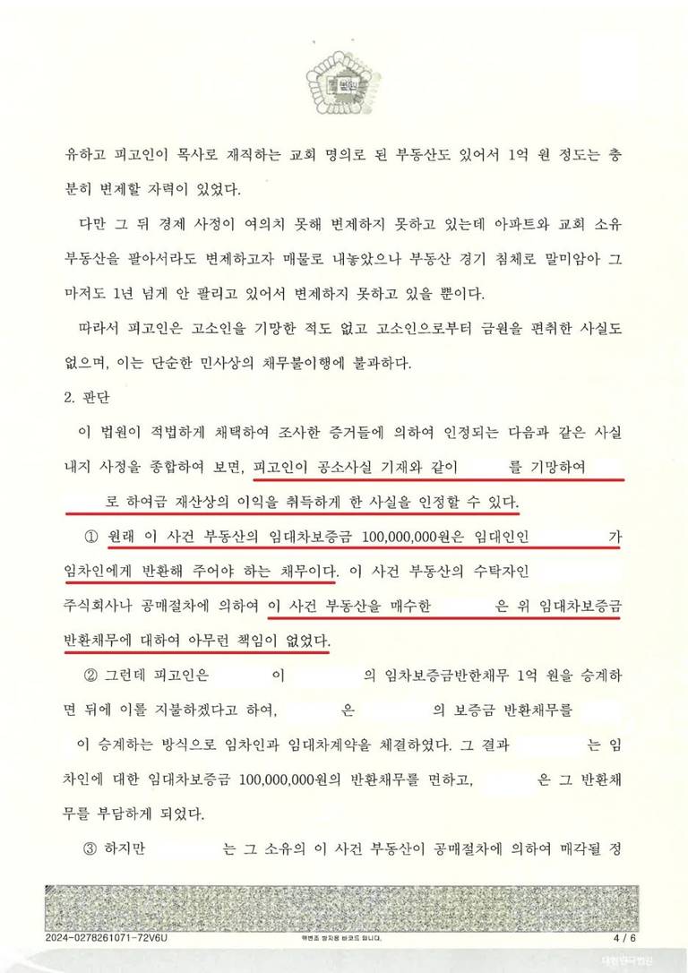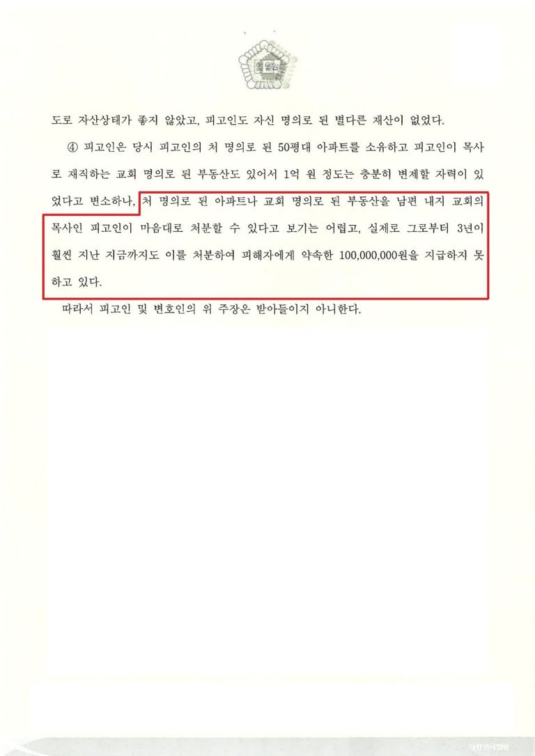특히 B씨가 제시한 아파트 매각 호가를 터무니없이 높은 가격으로 책정한 사실, 교회 부동산에 대한 실질적 처분권한을 숨기기 위해 허위로 대표자 명의를 변경한 사실 등을 구체적인 증거로 제시하며 기망행위를 철저히 입증했습니다.