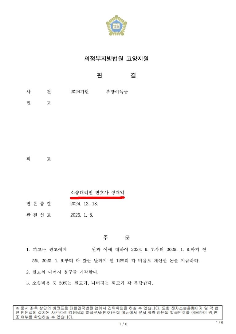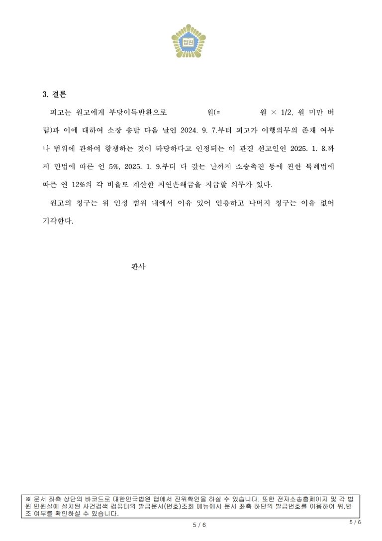 재판부는 판결에서 원고가 청구한 금액 중 1/2 이상을 인정하지 않았고, 불리했던 상황에도 불구하고 저는 법적인 헛점을 찾아내어 A씨에게 절반의 승소를 안겨주었습니다.