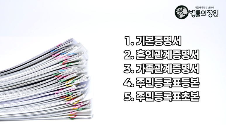 통상의 이혼절차와 마찬가지로 기본증명서,