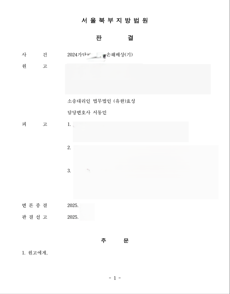 저는 즉각 가해자들을 상대로 민사소송 불법행위 손배청구를 하였고 법원은 원고 승소 판결을 선고하여 의뢰인은 피해액을 배상받았습니다.