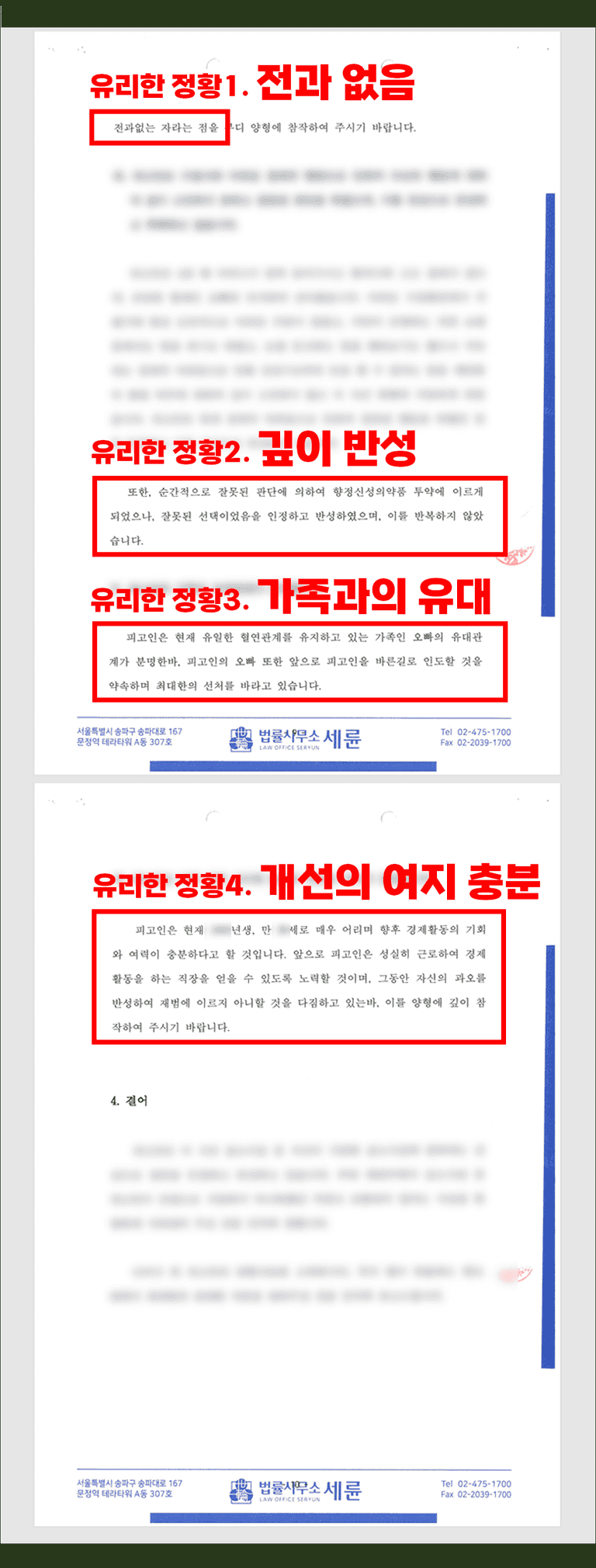 특히나 마약류 범죄는 수사기관이나 법원이 재범의 위험성이 높고, 사회적으로 악영향을 끼치는 범죄라고 보기 때문에, (치료프로그램을 이수하고 있다던가 가족과의 유대관계가 돈독하다던가 하는 등) 명확한 근거를 마련하여 불리한 정상으로 참작되지 않도록 주의해야 합니다.