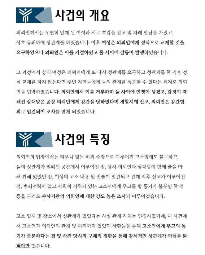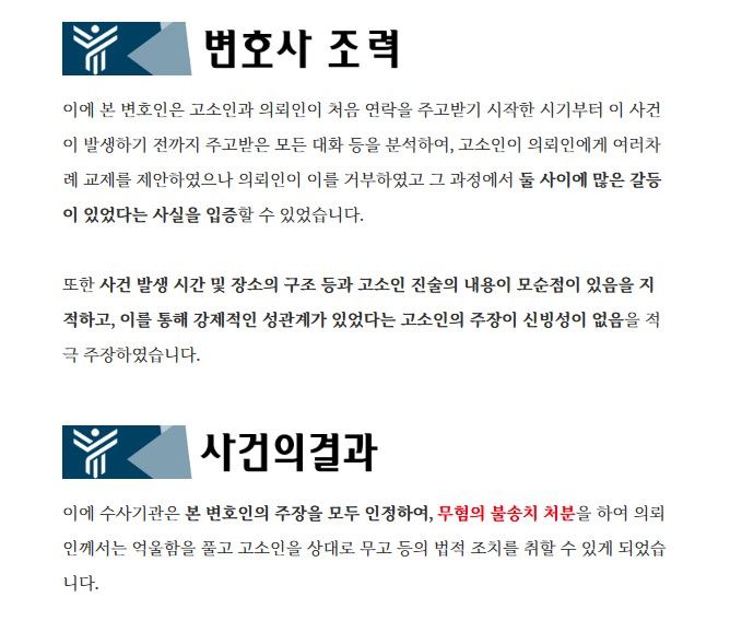 의뢰인을 "강간죄"로 고소하였고, 무혐의를 얻기 위하여