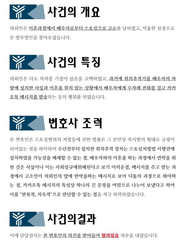 ![[스토킹처벌법위반] 전배우자의 스토킹 고소, 수사단계서 무혐의](/_next/image?url=https%3A%2F%2Fd2ai3ajp99ywjy.cloudfront.net%2Fuploads%2Ftitleimage%2Foriginal%2F5c2ec4dad664b0772b01bd4a-original.jpg&w=3840&q=75)