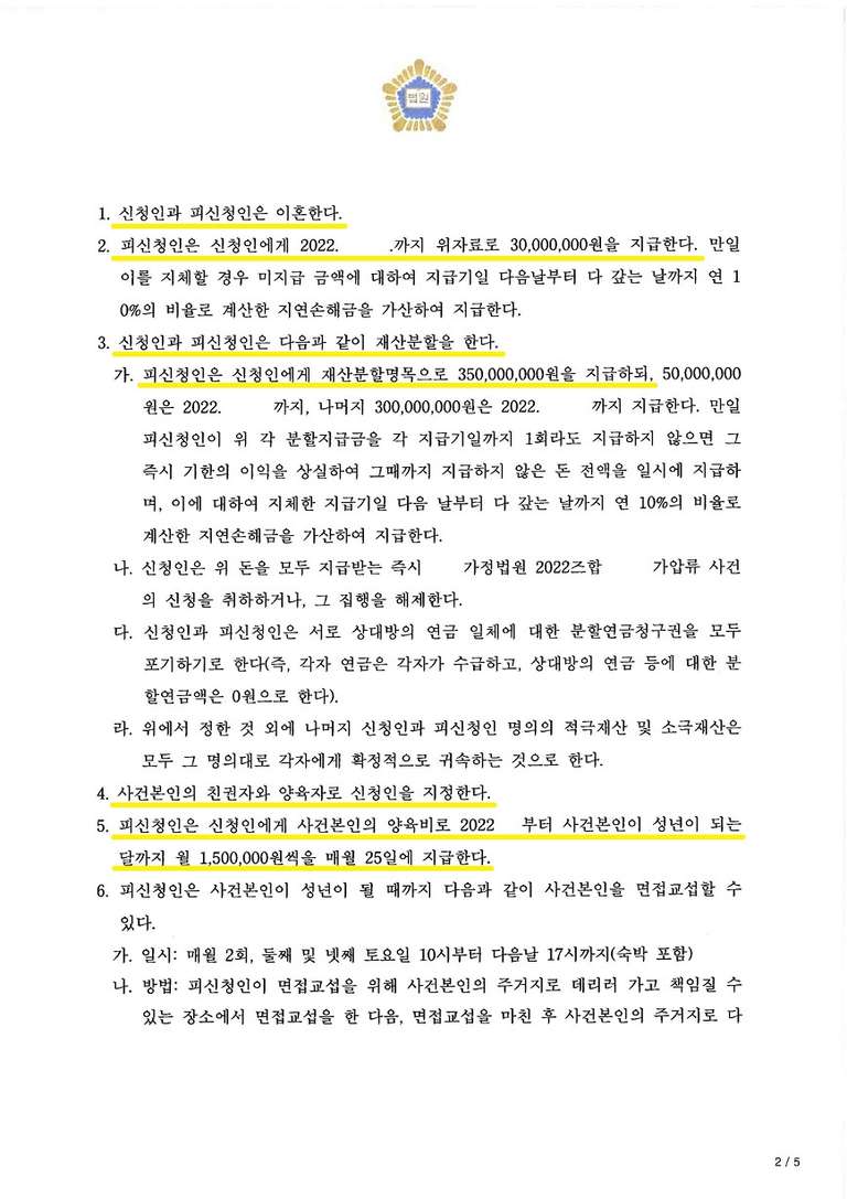수차례의 합의 시도 끝에 의뢰인은 혼인 기간이 7년이었음에도 원하던 대로 남편 재산의 절반인 3억 5천만 원을 지급 받고, 위자료 3천만 원에 양육비로 매달 150만 원씩 지급받는 내용으로 성공적으로 조정이 성립하였습니다.