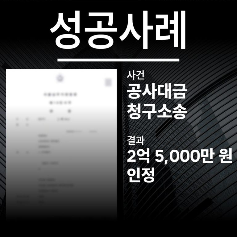 공사대금청구소송 → 결과 : ‘2억 5,000만원’ 인정