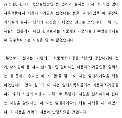 3) 감정인에게 사실조회를 보내 식품제조 가공업을 영위하기 위해서는 가능한 한 '환기시설'과 '주방배기시설'을 별도로 설치하여야 한다는 사실을 입증하였습니다.