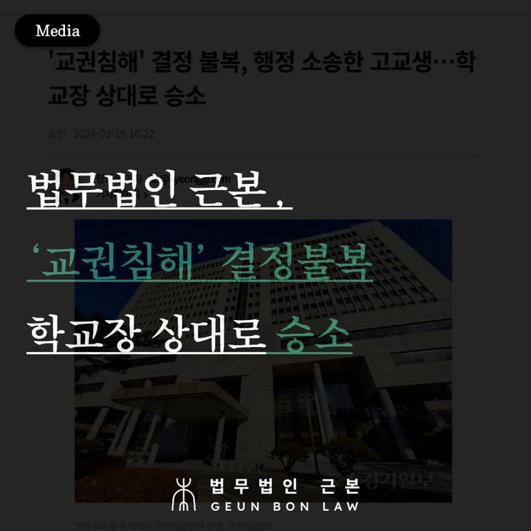 2024년 9월 19일자 경기일보에 법무법인 근본이 수행한 교권침해 관련 행정소송 승소 판결이 보도되었습니다.