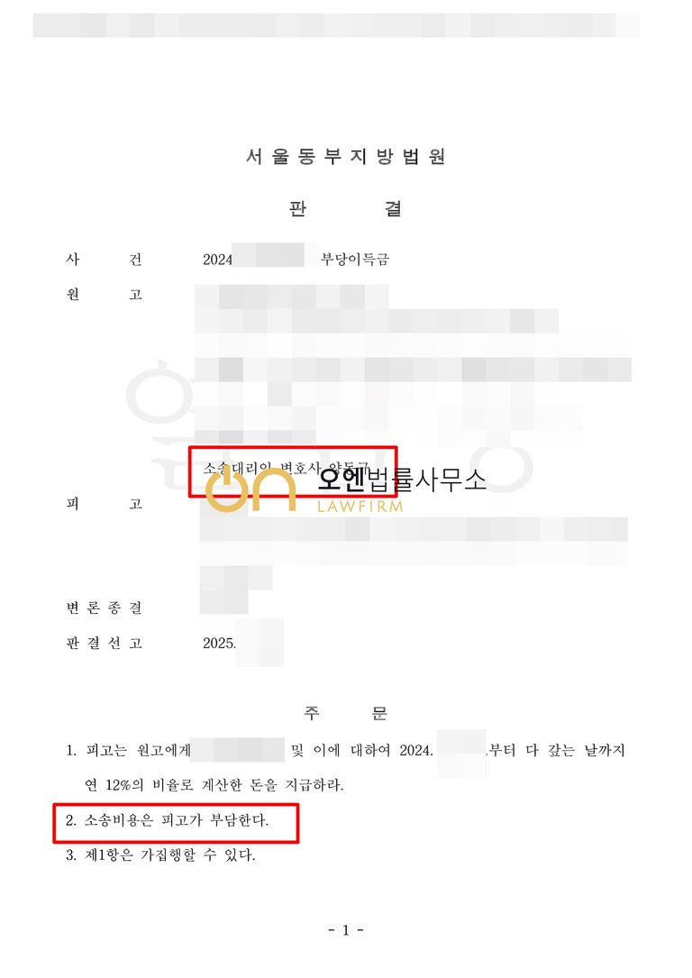 재판부는 담당변호사의 주장을 받아들여 미이행 건 전체에 대한 부당이득금 반환 판결을 선고하였습니다.