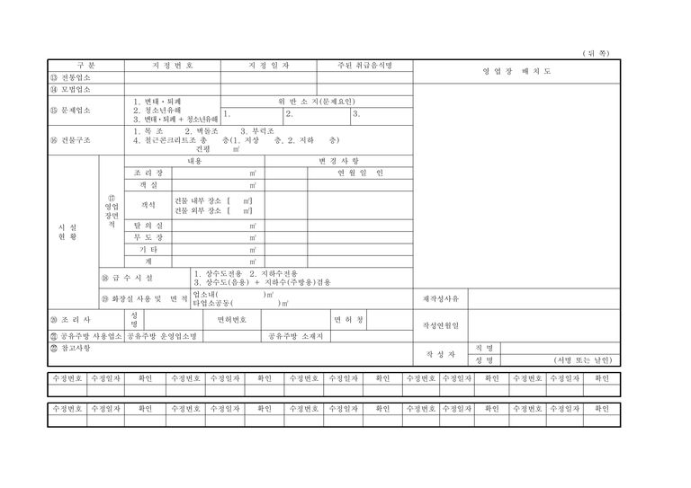 영업허가/신고 관리대장에는 위반 사항에 따른 행정처분 내역이 기재되어 있으므로 양수인은 이러한 관리대장을 통해 양도인이 언제 어떠한 제재처분을 받았는지 확인하여야 합니다. 내역 확인 이전에 양수도계약을 작성하는 경우라면 제재처분 사실 확인 시에도 계약을 유지할 것인지, 유지한다면 양도대금을 조정하는 특약 같은 것을 기재할 필요성 등을 사전에 협의해야 할 것입니다.