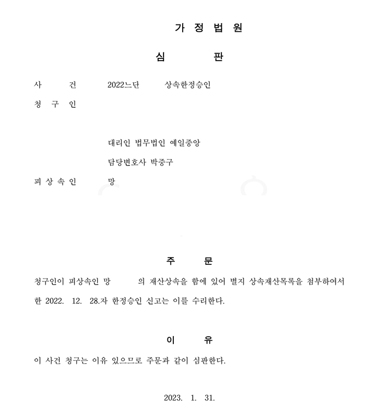 2. 상속인들의 한정승인 및 상속포기 등 각 신고를 완료한 다음 청산절차까지 완료한 사례입니다.