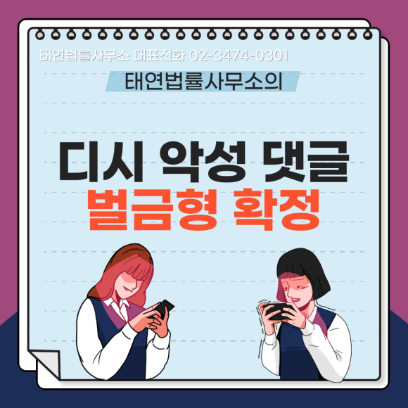 ![[성공사례]디시 악플, 유튜브 댓글 고소 성공](/_next/image?url=https%3A%2F%2Fd2ai3ajp99ywjy.cloudfront.net%2Fuploads%2Ftitleimage%2Foriginal%2F5c8d2ed0dba534c9c7d8df3f-original.jpg&w=3840&q=75)