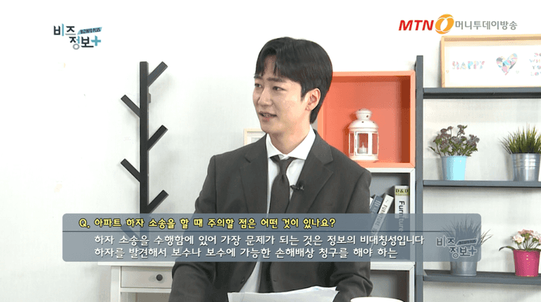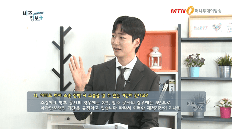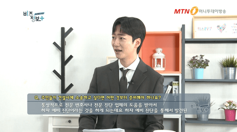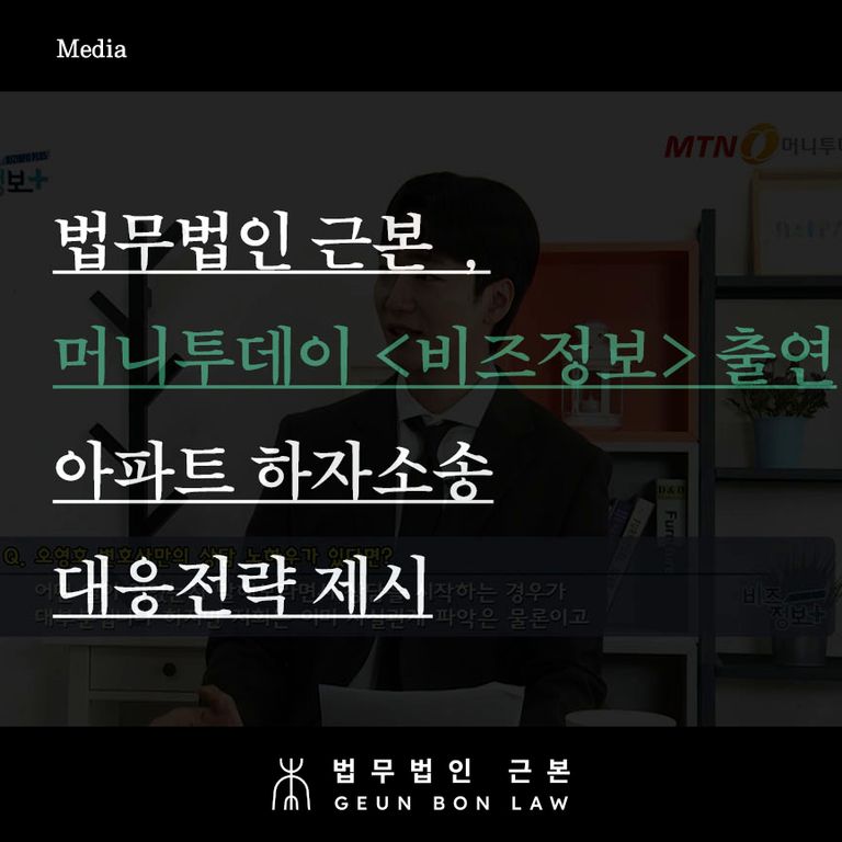 - 법무법인 근본, MTN 머니투데이 출연 - 하자진단업체부터 하자보수기간까지, 상가 보수 및 아파트 하자소송의 쟁점과 대응 방안 제시
