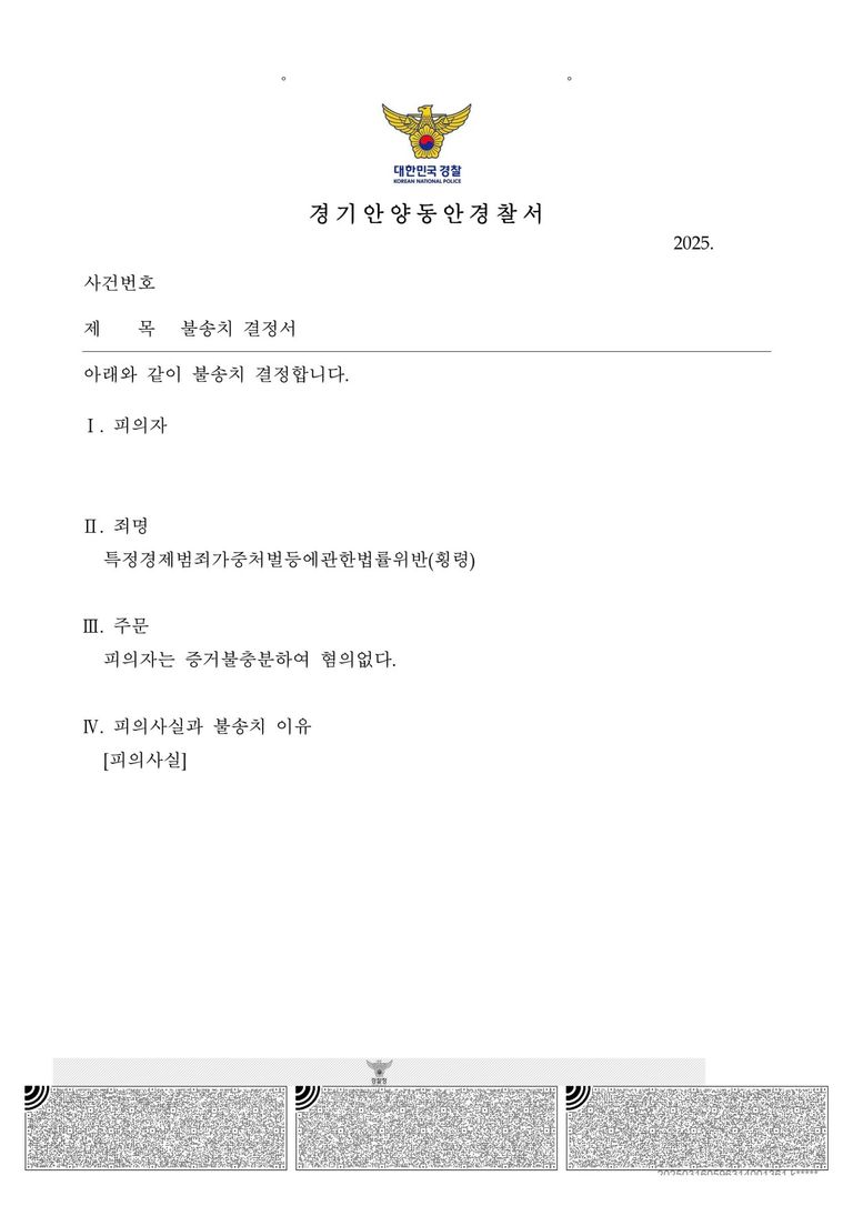 결국 사건은 아래와 같이 경찰단계에서 혐의없음 불송치로 종결되었습니다.