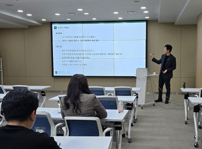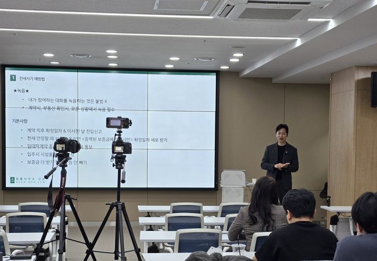 강연의 첫 번째 주제는 최근 사회적으로 큰 이슈가 되고 있는 ‘전세사기’였습니다. 오 변호사는 전세사기가 누구에게나 발생할 수 있는 현실적인 위험임을 짚으며, 이를 예방하기 위한 구체적인 방법을 소개하였습니다.