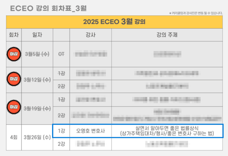 지난 3월 26일, 법무법인 근본의 오영호 변호사는 Expert Leadership Forum – Expert CEO 과정(ECEO)에 초청되어 실무 중심의 법률 강연을 진행하였습니다. 이번 강연은 전세사기 예방과 형사 절차 대응을 중심으로 구성되었으며, 일상생활과 업무 현장에서 유용하게 적용할 수 있는 실질적인 내용을 중심으로 이루어졌습니다.