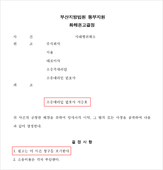 화해권고결정(강제조정)을 내리셨습니다.