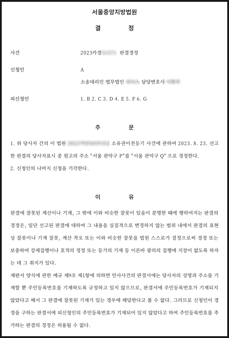 실무 TIP : 판결문을 받으면 즉시 내용을 꼼꼼히 확인하고, 오류를 발견했다면 가능한 빨리 경정신청을 하는 것이 좋습니다.