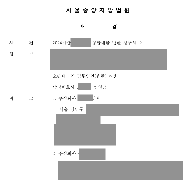 재판 진행 중 상대방 신탁사는 시공사도 공급계약의 당사자인데 공급계약 해제통보를 시공사에게 보내지 않아서 해제의 효력이 발생하지 않았다고 항변하였습니다.