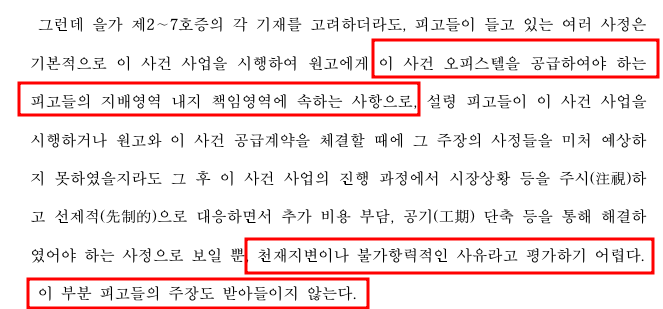 저에게 사건을 의뢰한 매수인(수분양자)도 입주예정일이 꽤 지난 것 같아서 시행사에게 공급계약 해제를 요구하였으나 시행사는 공사 중 연암층 돌출 발견, 전국 레미콘 파업, 화물연대 파업 등 불가항력적 사유로 입주지연이 발생한 것이어서 해제 요건에 해당되지 않는다고 일축하였습니다.