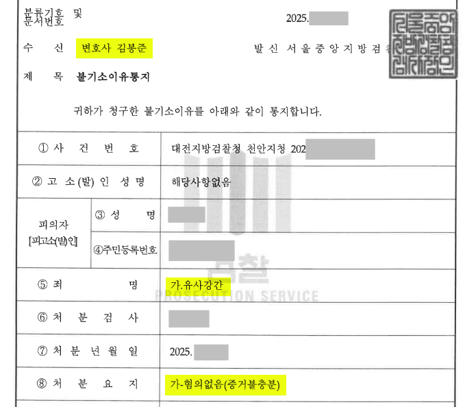대부분의 불기소 이유가 한해팀이 작성하여 제출한 의견서의 내용과 유사할 정도로 한해팀의 적극적인 변론이 빛을 발했던 사건입니다.