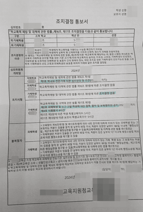 저희의 주장을 받아들인 학교폭력대책심의위원회는 다음과 같은 결정을 내렸습니다.