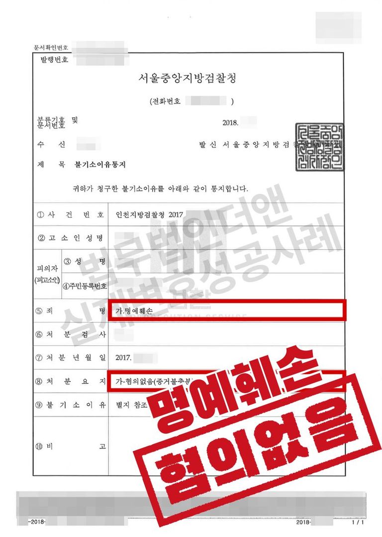 위와 같은 법무법인 더앤의 조력을 바탕으로 검찰은 A씨에게 혐의가 없다는 불기소 처분을 내렸고, A씨는 이로써 이 사건을 원만하게 마무리할 수 있었습니다.