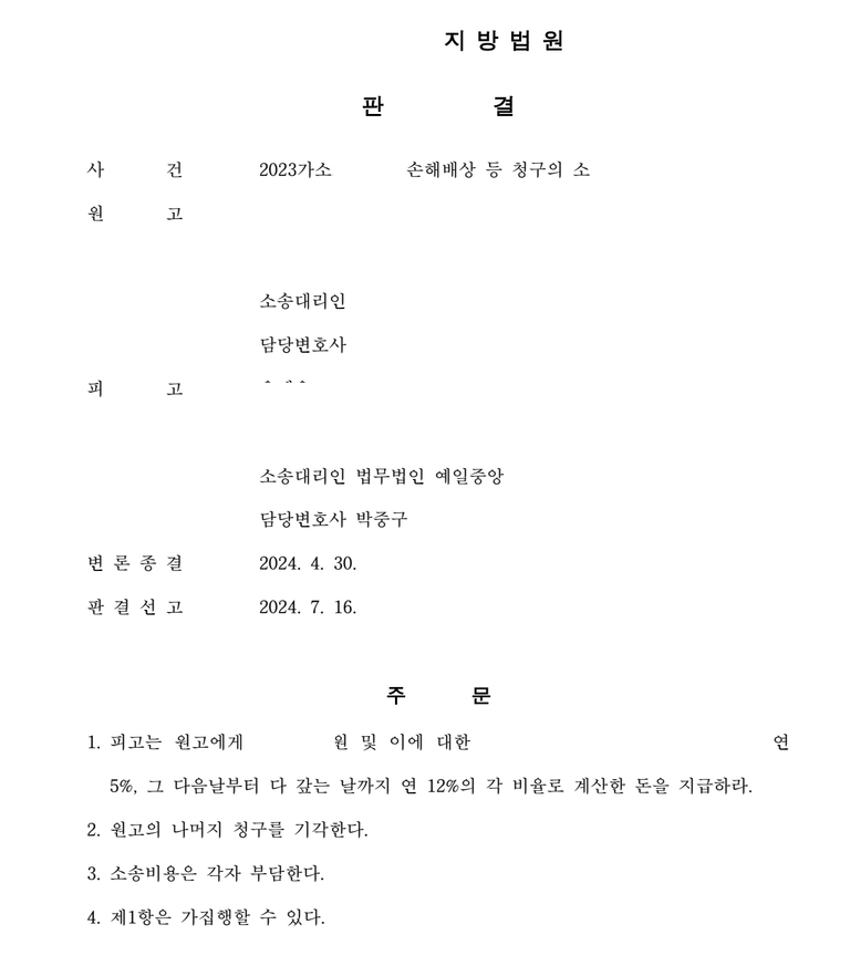 일부 기각판결을 받은 사례입니다.