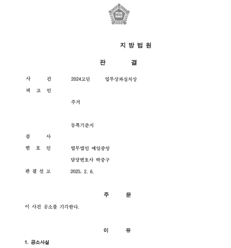 의뢰인은 의사로서 치료 도중 발생한 사고로 인하여 업무상과실치상 혐의로 기소되었는데, 피해자와의 합의를 완료하고 공소기각 판결을 받은 사례입니다.