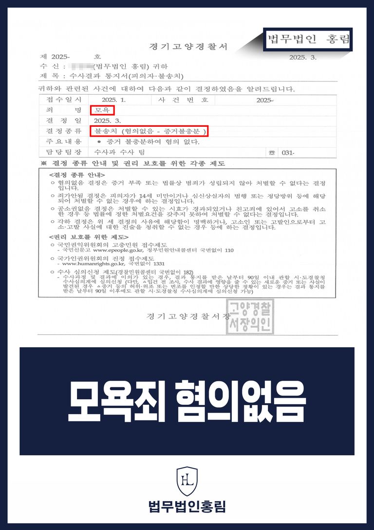 그 결과 경찰은 변호인의 주장을 받아들여 '불송치(혐의없음)' 결정하였습니다.
