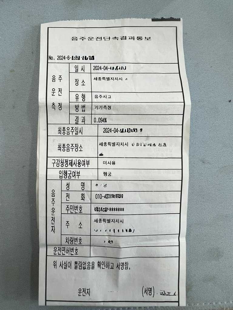 음주측정결과 혈중알콜농도가 0.094%로 운전면허 취소처분 사전통지서까지 받은 사건이었는데요