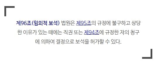 임의적 보석은 아래 조문에서 보는 것과 같이 위 6가지 사정에 해당하더라도 법원이 임의적으로 보석을 허가할 수 있다고 규정되어 있기 때문에 이를 '임의적 보석'이라고 합니다.