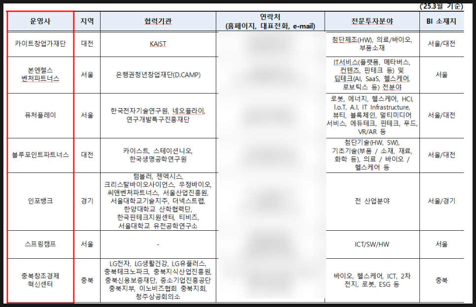 운영사는 tips 프로그램 홈페이지에서 확인할 수 있는데, 예를 들어 2025. 3. 기준 운영사로 등록되어 있는 곳은 다음과 같다.