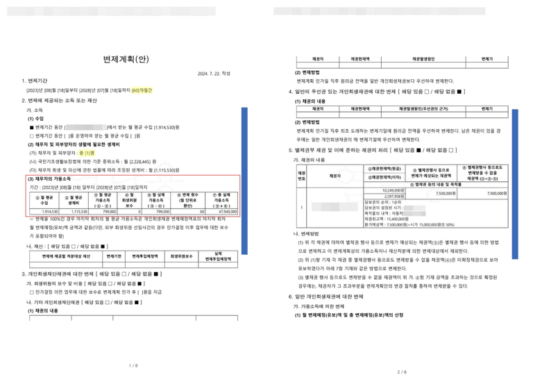 변제계획안 작성