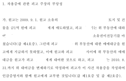 3. 원고의 대리인은 대여금이 아니라 부동산 매수대금 지급과 관련하여 작성된 차용증임을 자인하였습니다.