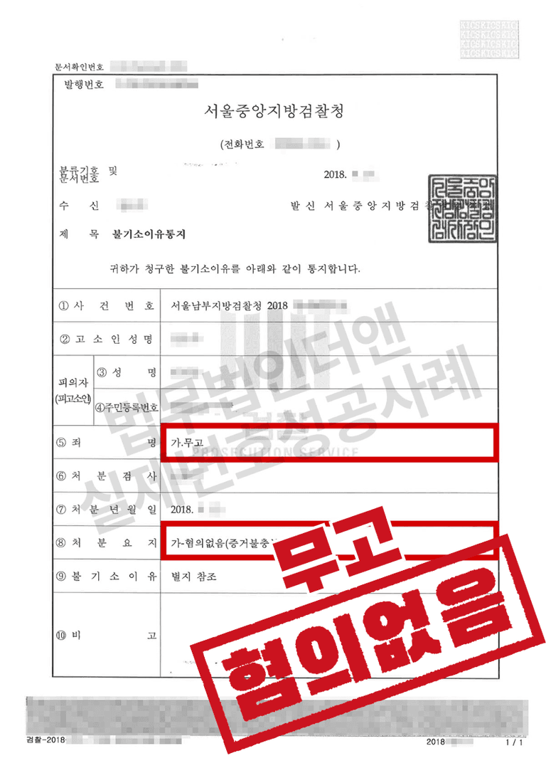 위와 같은 법무법인 더앤의 조력을 바탕으로 검찰은 A씨에게 혐의가 없다는 불기소 처분을 내렸고, A씨는 이로써 이 사건을 원만하게 마무리할 수 있었습니다.