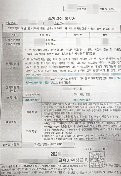 이러한 주장을 담은 의견서를 바탕으로, 학교폭력대책심의위원회는 A양의 고의성 부족과 반성의 진정성을 인정하여 ‘조치사항 없음’ 결정을 내렸습니다.