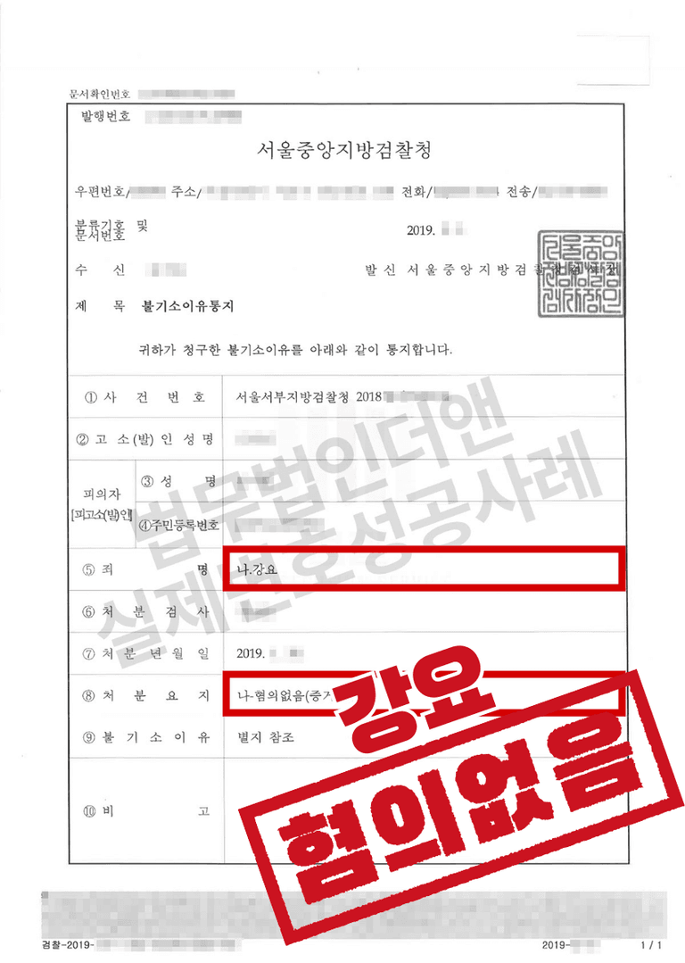 더앤은 확보한 증거를 바탕으로 A씨가 가입을 권유한 대출상품은 신입사원 대부분이 가입한다는 점, B씨가 대출 상품에 가입하더라도 A씨가 얻는 이익은 없다는 점, A씨와 같은 은행에서 근무하던 직원들은 A씨가 B씨를 폭행하거나 협박한 사실을 목격한 바가 없다고 진술하였다는 점 등을 주장하며 A씨가 B씨를 강요하였다는 사실을 입증할 증거가 불충분하고 A씨에게 혐의가 인정될 수 없다는 취지의 의견서를 수차례 작성하여 수사 기관에 제출하였습니다.