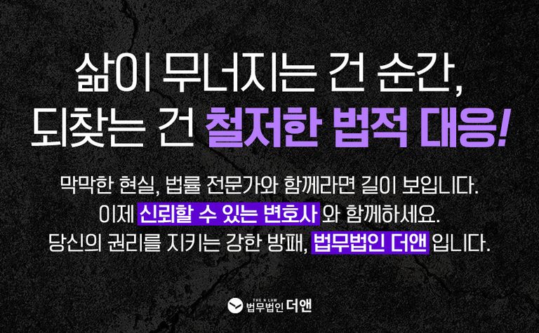 A씨와 같이 순간의 실수로 일생일대의 위기에 처하신 분들은 주저하지 마시고 저희 법무법인 더앤에 연락주세요. 비교할 수 없는 전문성을 바탕으로 저희가 꼭 위기에서 구출해 드리겠습니다. 감사합니다.