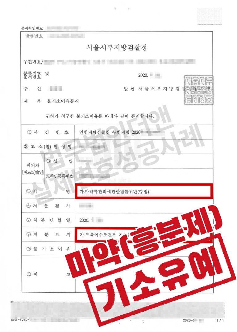 이러한 저희 법무법인 더앤의 조력으로 A씨는 검사로부터 한국마약퇴치운동본부 교육 이수를 조건으로 하는 기소유예 처분을 받음으로써 형사처벌의 위험에서 벗어날 수 있게 되었습니다.