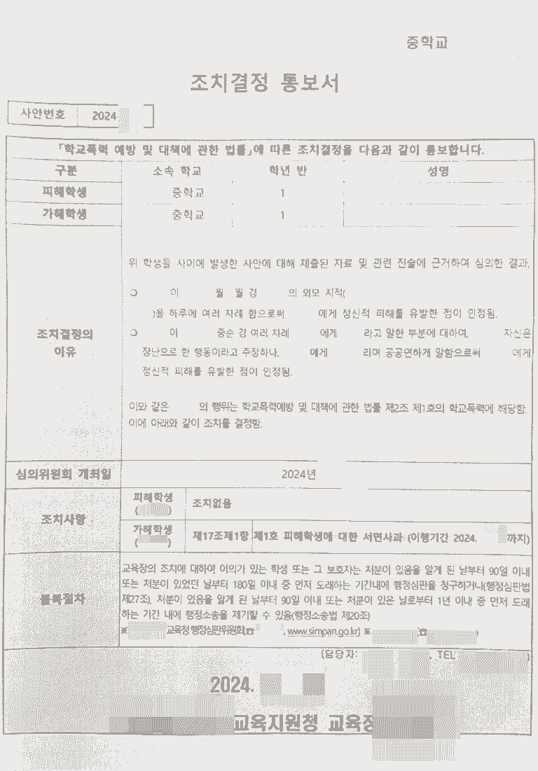 4. 학폭위의 결정 – 1호 서면사과 조치로 마무리