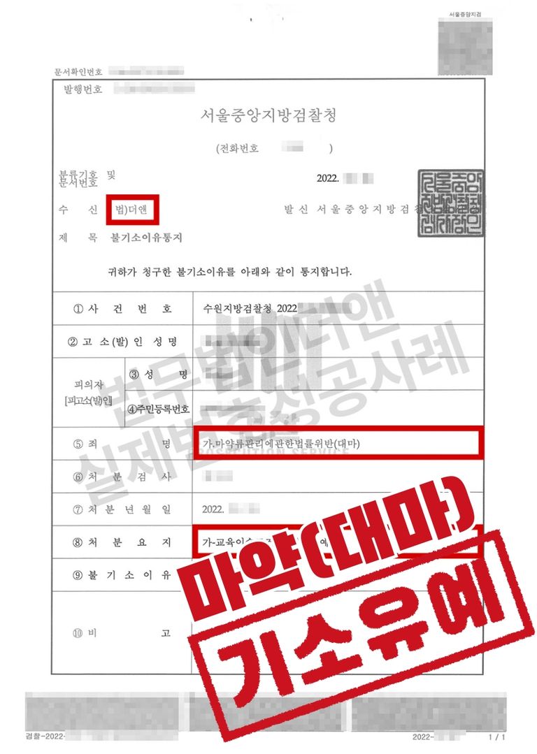 위와 같은 법무법인 더앤의 조력을 바탕으로, A씨는 검사로부터 마약사범 재범방지 교육조건부 기소유예 처분을 받음으로써 일상으로 돌아갈 수 있었습니다.
