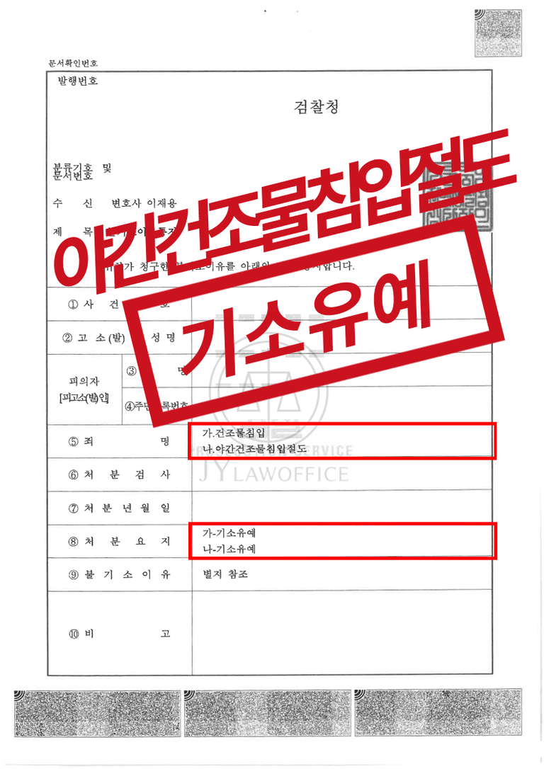 이와 같은 본 형사전문변호사의 조력에 따라, 의뢰인은 야간건조물침입절도 혐의에서 다시 한번 기소유예 처분을 받고 사건을 무사히 종결시킬 수 있었습니다.