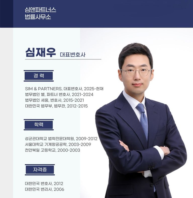 믿음직하고 친절한 법률 파트너, 심앤파트너스 법률사무소의 대표 심재우 변호사입니다.