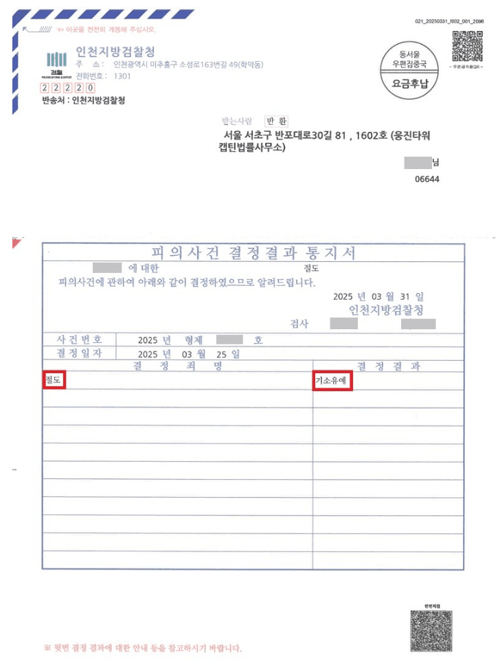 대형마트에서 3회에 걸쳐 각 10만원 내외의 물건을 훔쳤다는 이유로 신고되었고, 피해는 변제되었으나 마트 정책상 합의가 되지 못하였으나, 축적된 노하우를 바탕으로 양형변론을 통하여 기소유예를 이끌어낸 사례