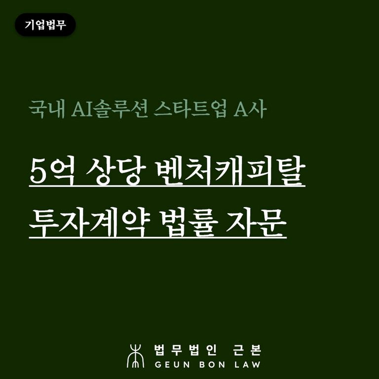 ![[국내 AI 솔루션 스타트업 A사] 5억 상당 벤처캐피탈 시드(Seed) 투자계약 체결 자문 수행](/_next/image?url=https%3A%2F%2Fd2ai3ajp99ywjy.cloudfront.net%2Fuploads%2Ftitleimage%2Foriginal%2F5b890c666696eb4a246e021f-original.jpg&w=3840&q=75)