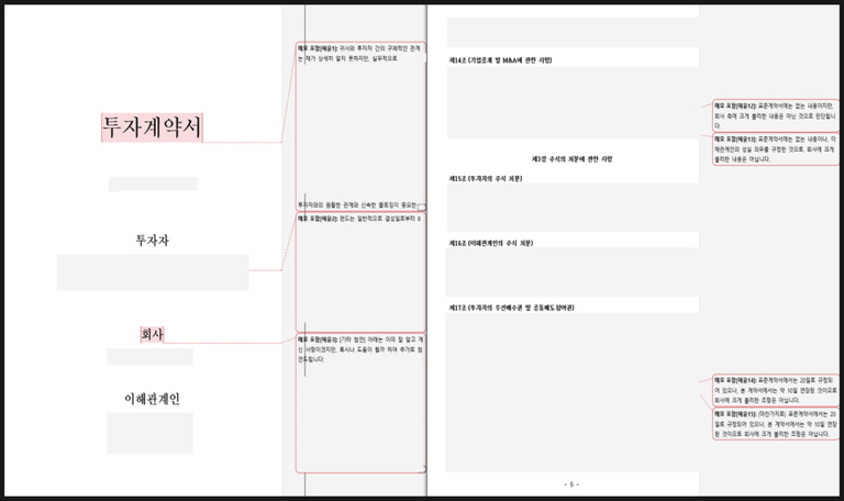 최종적으로, 투자자는 지분 유지 기준을 완화하고 신규 협업 사업 제한을 구체화하는 데 동의했으며, B사는 경영간섭을 줄이고 안정적으로 투자금을 확보할 수 있었습니다. 본 사례는 스타트업이 투자협상에서 모든 조항을 수정하려 하기보다, 협상 우선순위를 설정해 반드시 보호해야 할 권리만 전략적으로 조정하는 것이 중요함을 보여줍니다.
